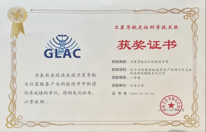 黄观文教授主持完成的“北斗实时精密轨道钟差产品精化及完好性监测关键技术与应用”项目荣获2024年度卫星导航定位科技进步奖一等奖。