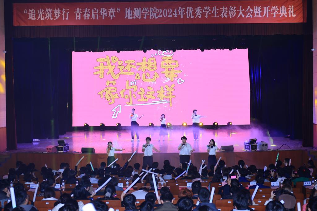 全体师生对2024级全体新同学表示热烈的欢迎,同时对同学们提出了期望和要求:一是学习身边榜样,在学习中不断用知识完善自我,顺应时代大局,立鸿鹄之志,做挺膺担当奋斗者。二是以热爱为本,守初心之约,在专业学习中强化本领和担当,将个人梦想与强国使命相连,心怀家国,做民族复兴贡献者。三是以创新为帆,踏时代之浪,系统学习、锚定需求,青年学生更要勇于探索,读好“有字”“无字”之书,做全面发展“地测人”。