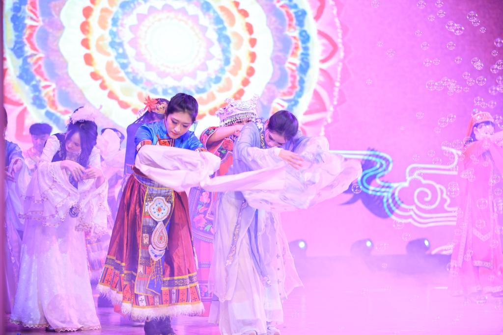 各组织学生带来《一路生花》《写给长大的你》《美丽中国》等节目表演,青春洋溢、气氛热烈、歌舞飞扬、精彩纷呈的表演赢得了现场师生的热烈掌声。