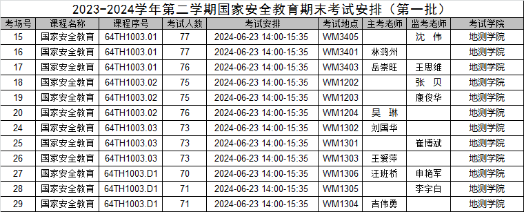 本学期国家安全教育期末考试监考安排已发布,监考教师可同时在本科教务系统中查看监考安排。为确保考试平稳顺利进行,澳门金沙娱乐城app 已将相关监考工作安排表格上传到附件中,请各位老师及时下载查阅,并按时完成监考工作。