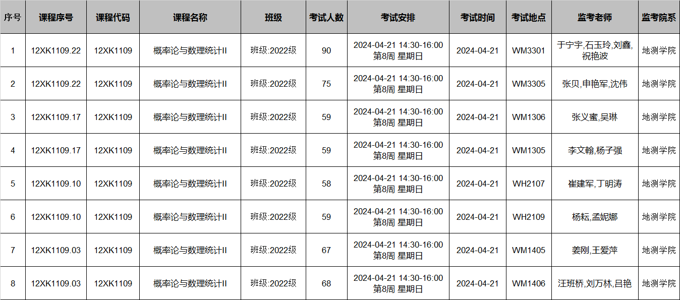 2023-2024-2学期概率论与数理统计期中考试安排已发布,监考安排澳门金沙娱乐城app 已经在本科教务系统中填报完成(监考教师可同时在本科教务系统中查看监考安排)。为确保考试平稳顺利进行,澳门金沙娱乐城app 已将相关监考工作安排表格上传到附件中,请各位老师及时下载查阅,并按时完成监考工作。