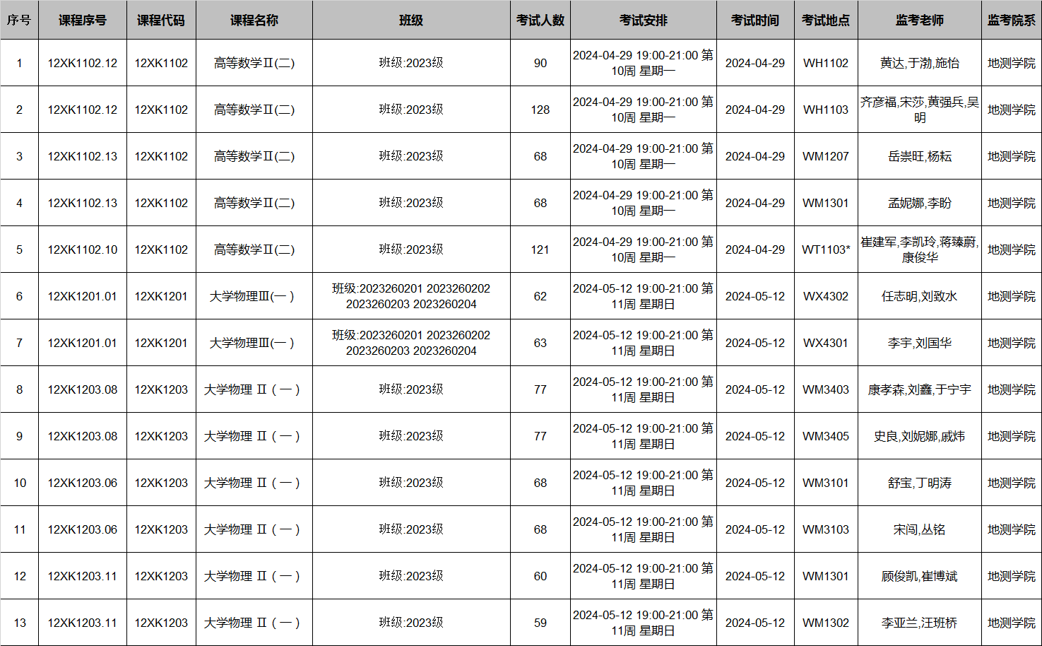 2023-2024-2学期高等数学、大学物理期中考试安排已发布,监考安排澳门金沙娱乐城app 已经在本科教务系统中填报完成(监考教师可同时在本科教务系统中查看监考安排)。为确保考试平稳顺利进行,澳门金沙娱乐城app 已将相关监考工作安排表格上传到附件中,请各位老师及时下载查阅,并按时完成监考工作。