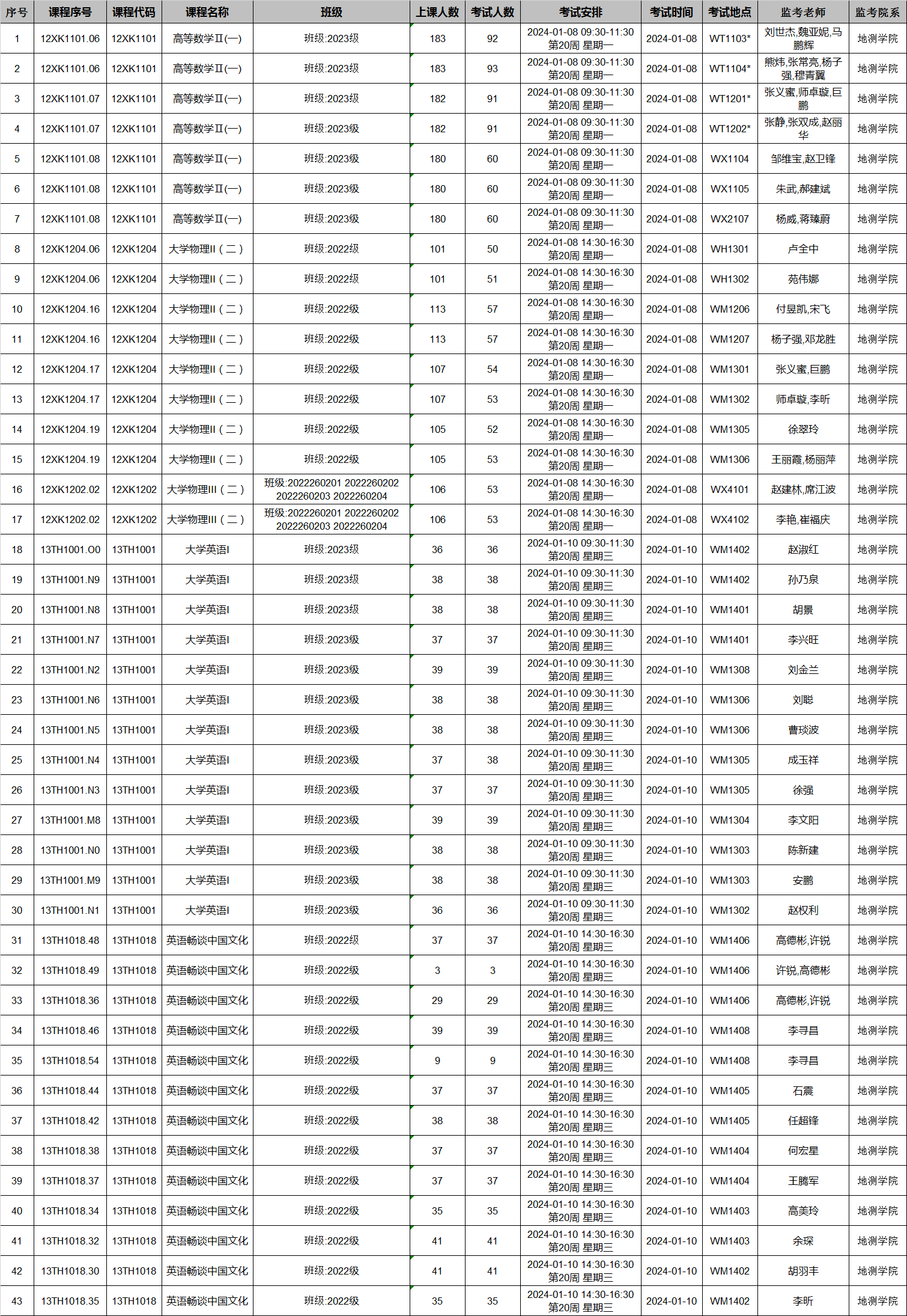 本学期高等数学、大学物理、英语类考试周期末考试监考安排已发布,监考安排澳门金沙娱乐城app 已经在本科教务系统中填报完成(监考教师可同时在本科教务系统中查看监考安排)。为确保考试平稳顺利进行,澳门金沙娱乐城app 已将相关监考工作安排表格上传到附件中,请各位老师及时下载查阅,并按时完成监考工作。