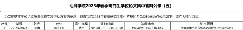 为贯彻落实学位论文质量保障专项行动方案的要求,现将澳门金沙娱乐城app 2023年春季研究生集中答辩的名单及时间地点公示如下,请广大师生监督。