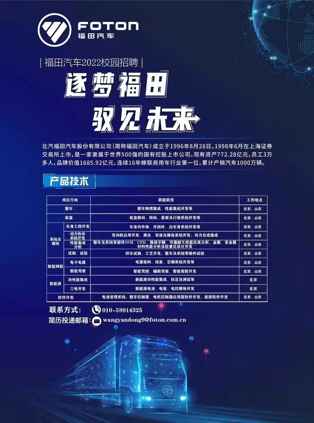 北汽福田汽车工程研究总院2022春季校招空中宣讲会