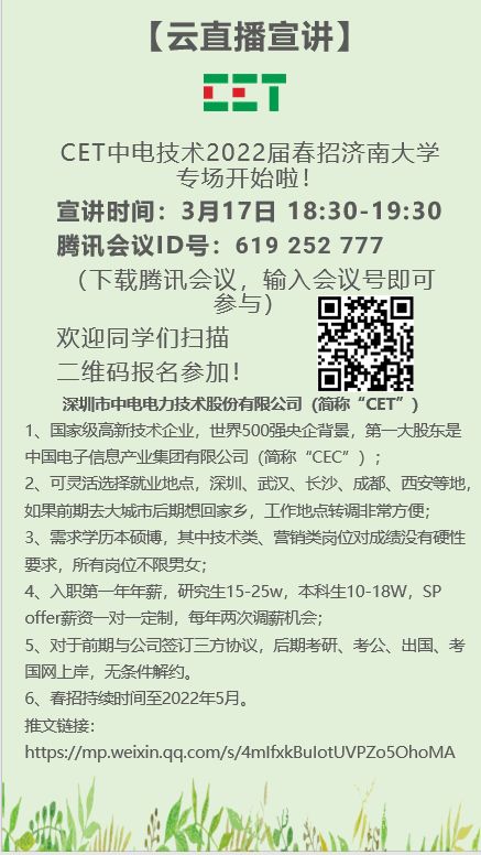 CET中电技术2022届春招澳门金沙娱乐城App 专场开始啦!