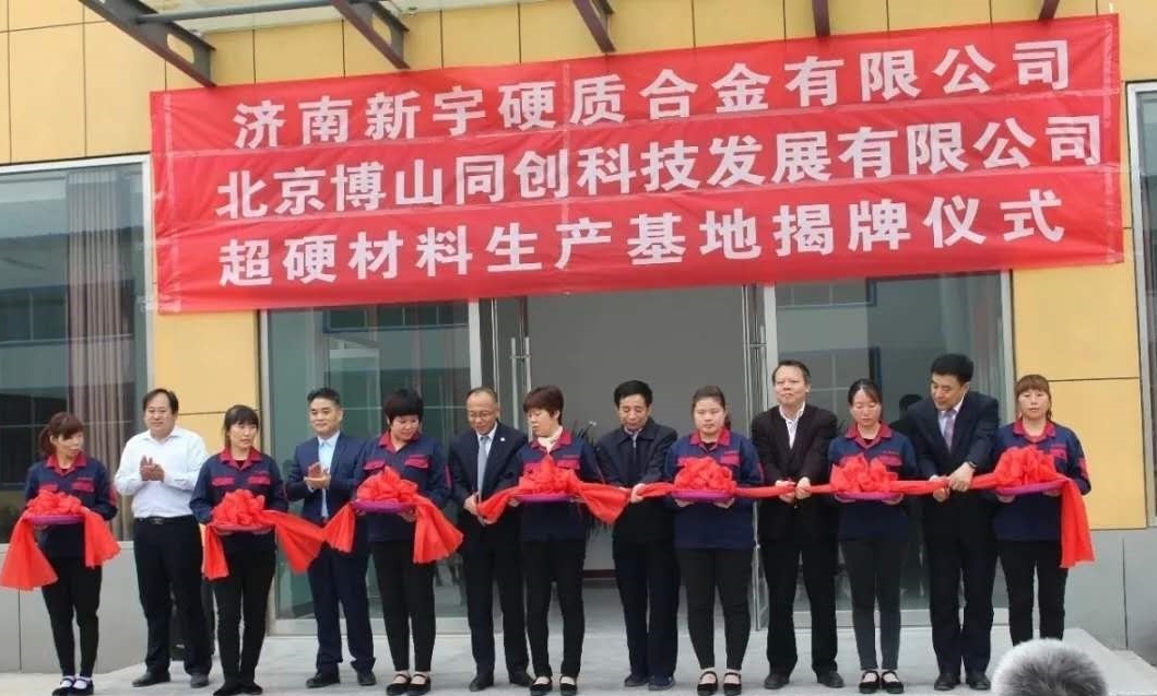 博山同创校友会“企业—北京博山同创科技发展有限公司与校友企业—济南新宇硬质合金有限公司联合创办的”超硬材料生产基地“落成剪彩仪式在济南举行。